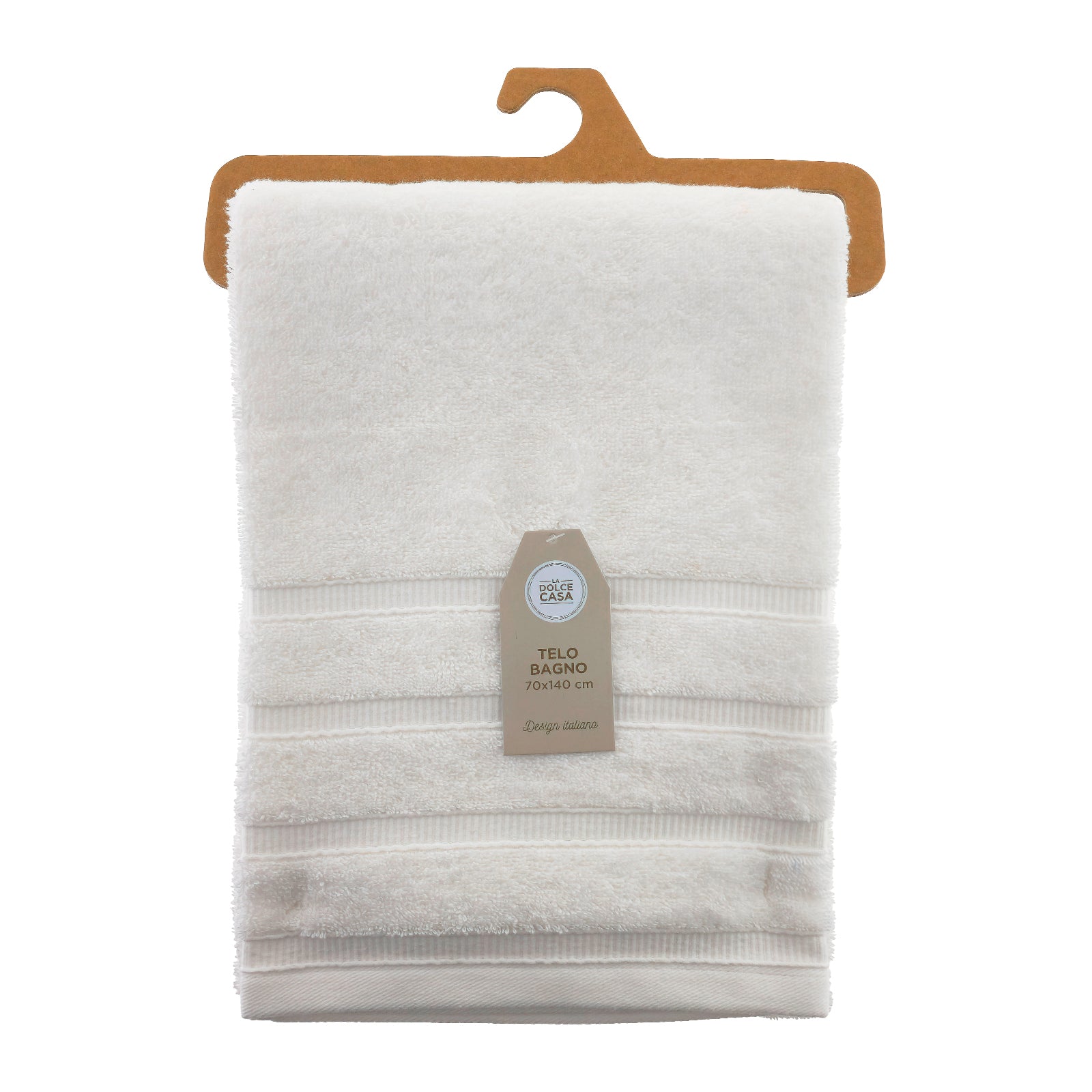 Asciugamano bianco in puro cotone. Spugna soffice e delicata, ideale per una coccola morbida e avvolgente. Disponibile in tre formati per adattarsi perfettamente alle vostre esigenze. Il bianco puro conferisce eleganza a qualsiasi bagno, mantenendo un'estetica pulita e sofisticata.