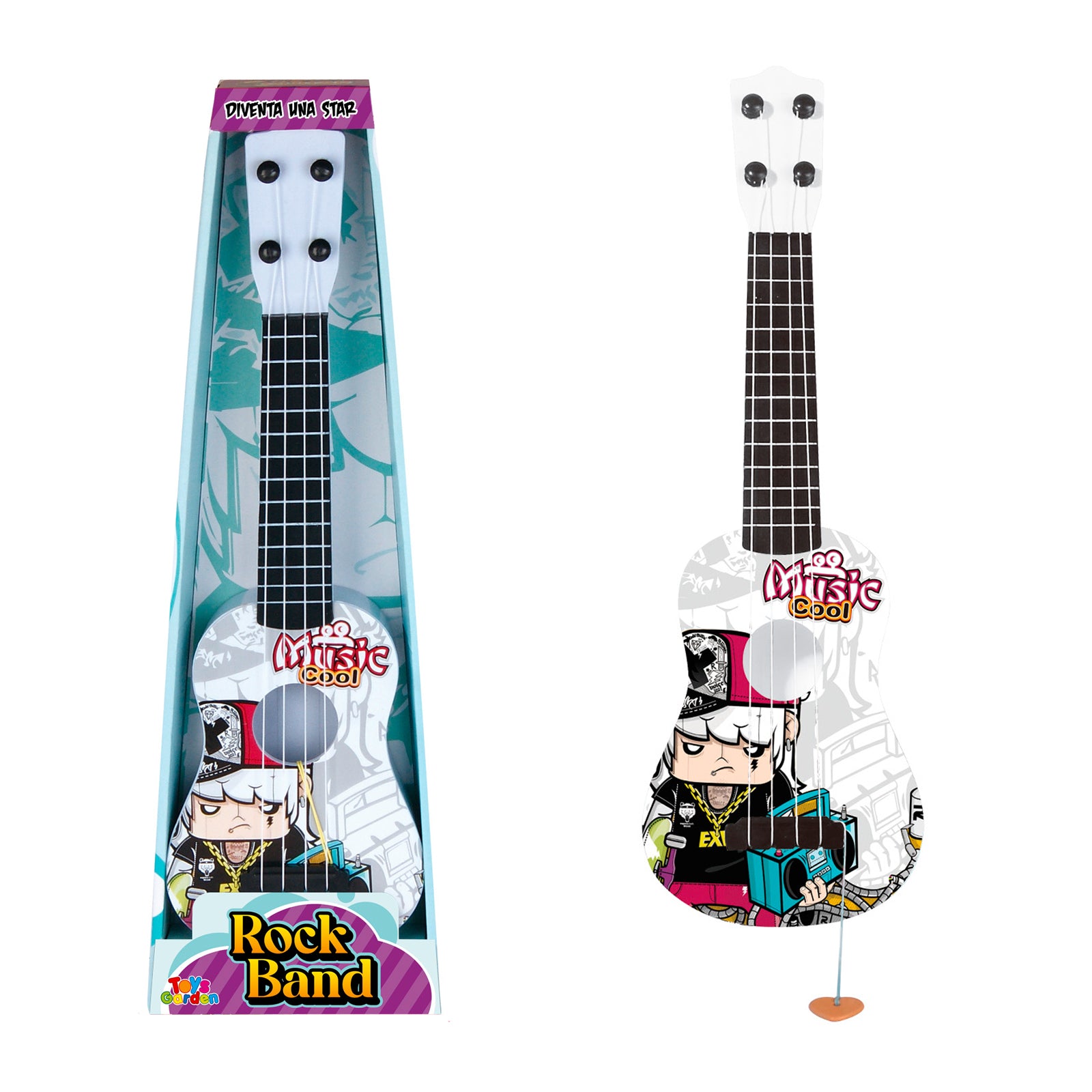Chitarra in plastica, con 4 corde, lunghezza 63 cm. Chitarra giocattolo per poter sperimentare e imparare i tuoi primi accordi ed essere una piccola rock star.