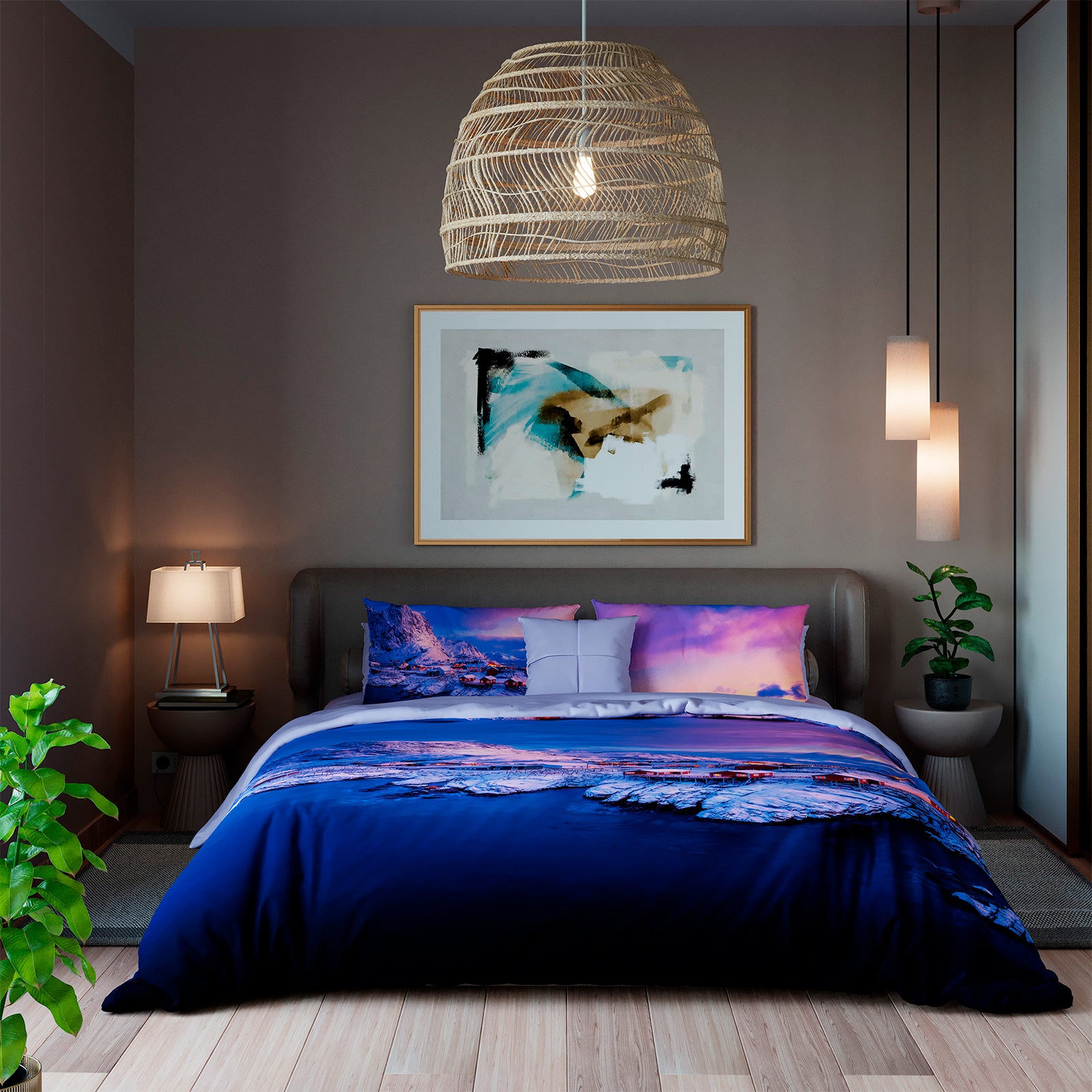 Parure copripiumino in puro cotone, composto da copripiumino e federa/e. Dalla trama fine e morbida per portare nella tua camera da letto un’atmosfera avvolgente e ricercata, è realizzato in stampa fotografica con fantasia di paesaggi.