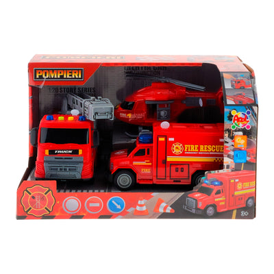 SET 3 AUTOVEICOLI POMPIERI A FRIZIONE CON LUCI E SUONI