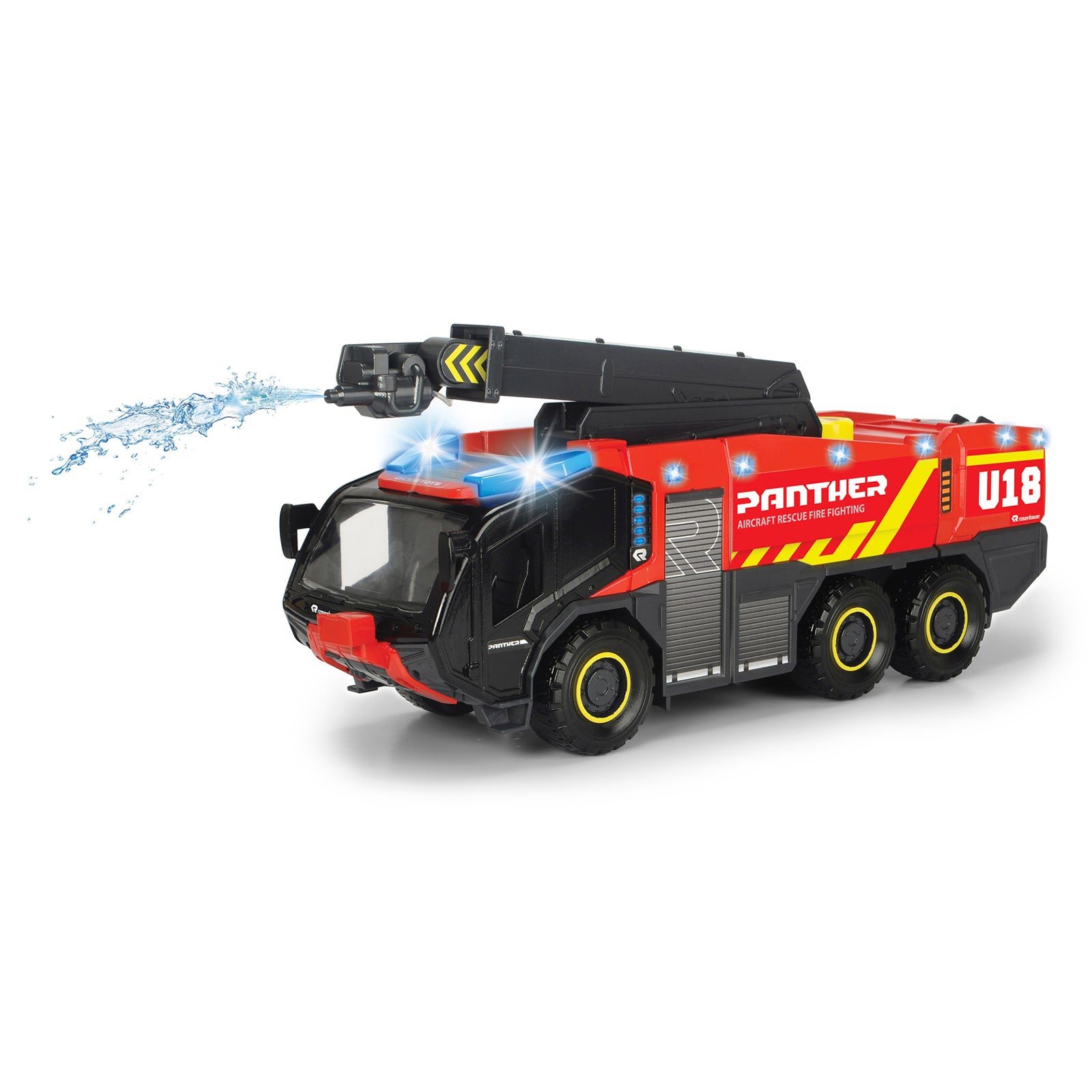 Rosenbauer Panther 6x6 da 62 cm, con meccanismo a ruota libera, braccio estensibile con funzione di spruzzo dell’acqua manuale, cabina con interni ricchi di dettagli. Con funzione luci e suoni per un divertimento ancora più avvincente.