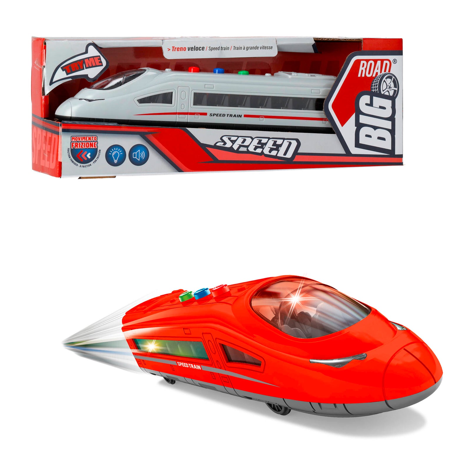 Diventa capotreno e guida il velocissimo treno a frizione! Con luci e suoni realistici, ti sembrerà di viaggiare a tutta velocità. Perfetto per chi ama il brivido delle corse!